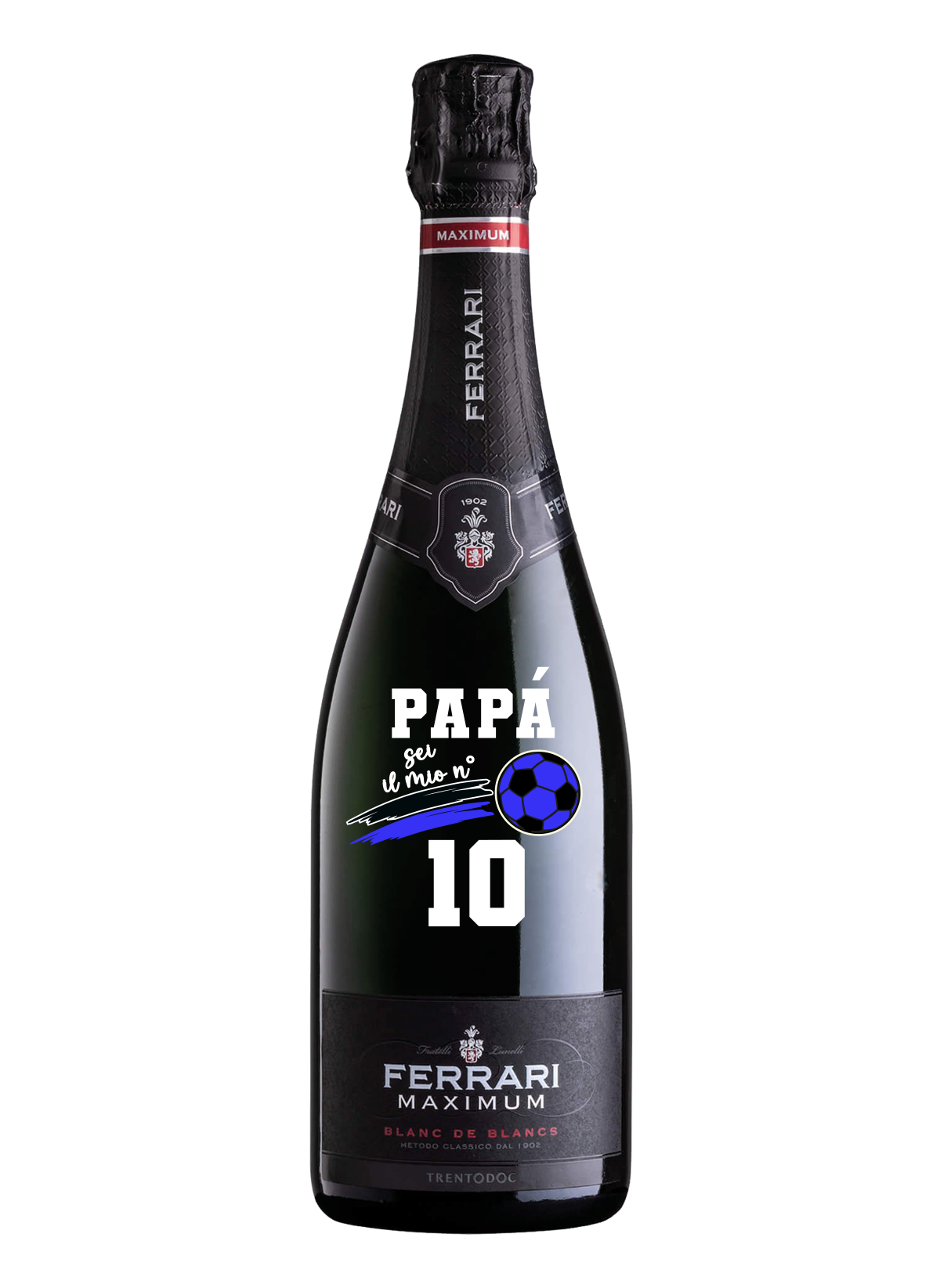 Ferrari Maximum Blanc de Blancs in a special edition dedicated to da d, designed to celebrate his footballing loyalty and passion for his favorite team.
