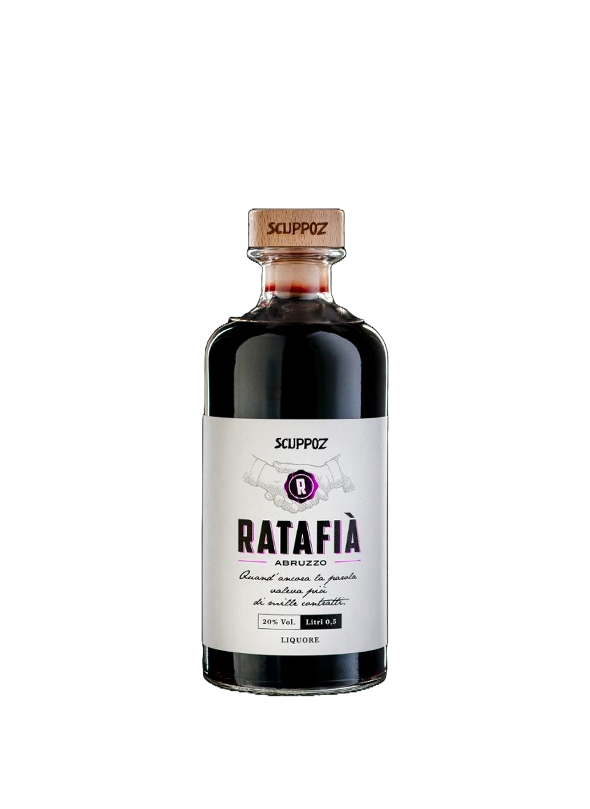 La Ratafià Scuppoz è un liquore ottenuto per infusione di vero e genuino succo di amarene di collina abruzzesi nel vino montepulciano, con l'aggiunta di alcool e zuccheri in quantitativi minori. La sensazione dolce al palato viene conferita dal vino rosso di gradazione piuttosto importante, mentre in coda spicca l'acidità dell'estratto di amarena che esprime tutte le proprietà organolettiche delle materie prime e l'alto standard qualitativo. Ideale se accompagnato ad un dolce alla fine di un pasto.