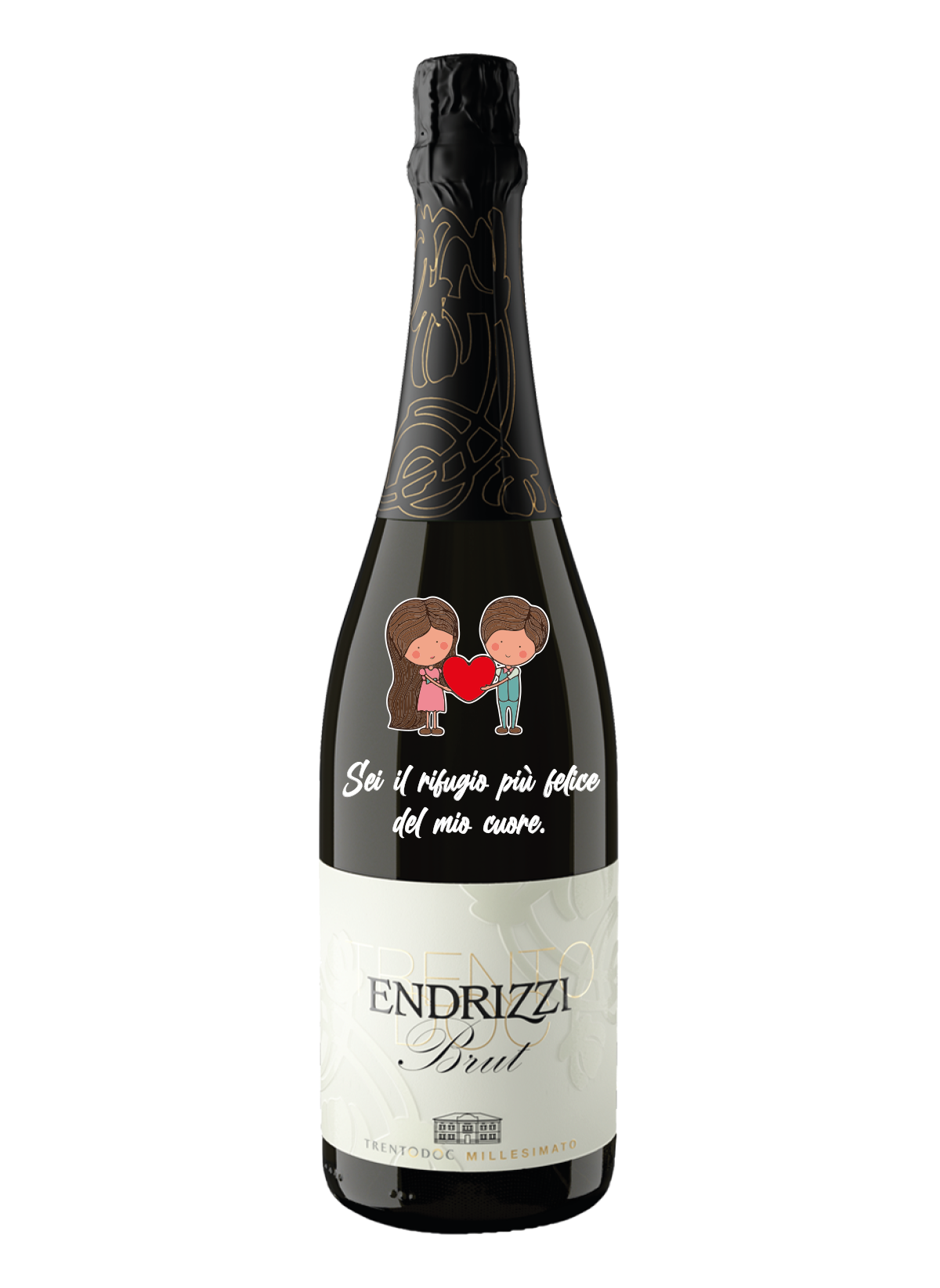 Quella che vedi in foto è un esempio di come sarà la tua bottiglia personalizzata. Per avere una bottiglia personalizzata devi scegliere un vino, spumante o champagne in catalogo a cui andremo ad applicare questa decorazione, impressa sul vetro.