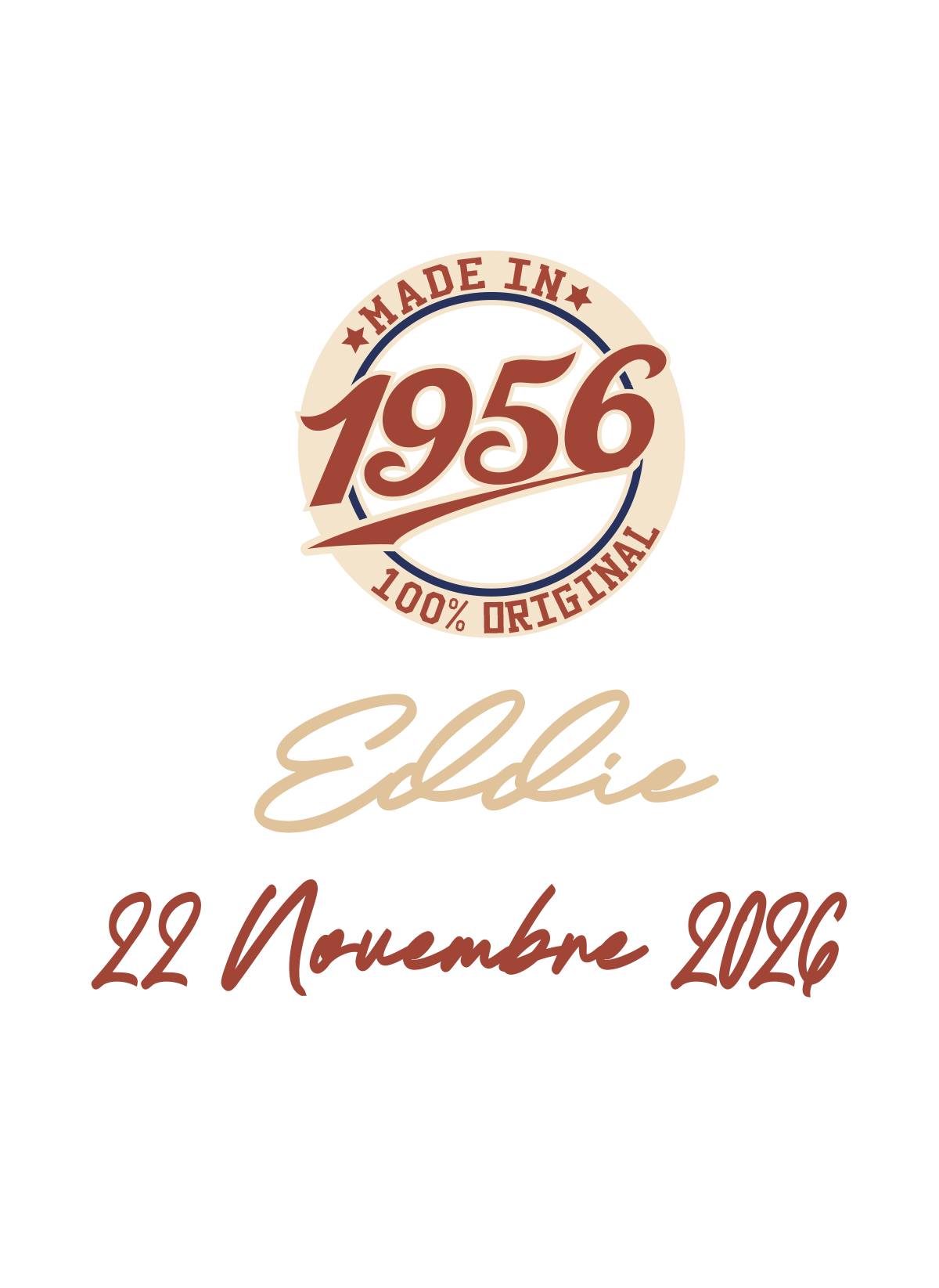 Nomi e data in foto sono a titolo di esempio. Puoi specificarli in "personalizzazione del prodotto".