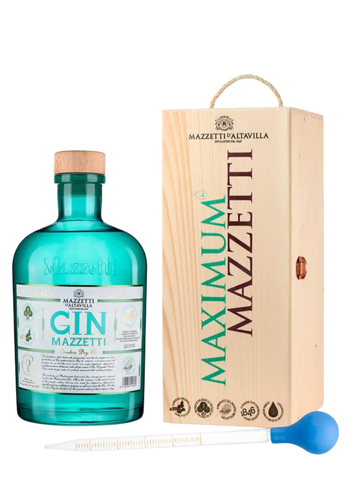 ll Gin Mazzetti Magnum è un London Dry italiano dal carattere elegante e deciso, arricchito da botaniche alpine e agrumi freschi. Presentato in cassetta con pipetta, è perfetto per degustazioni, cocktail di precisione o come regalo raffinato.