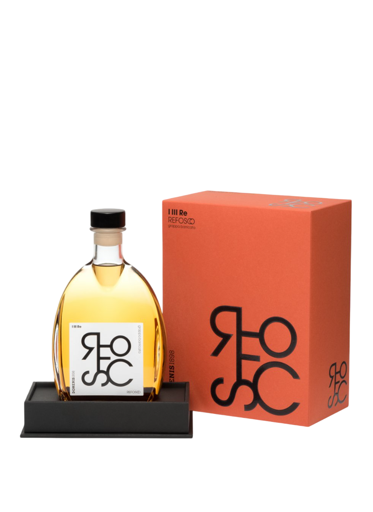 Questa grappa nasce da vinacce fresche di Refosco, conservate e lavorate separatamente per preservarne aromi e identità. La distillazione avviene in impianto discontinuo in rame con otto alambicchi a vapore diretto, mentre un affinamento di almeno 12 mesi in barrique di rovere francese dona al distillato il suo colore ambrato e la sua rotondità. Elegante e complessa, rappresenta una delle punte di diamante della linea I Tre Re.