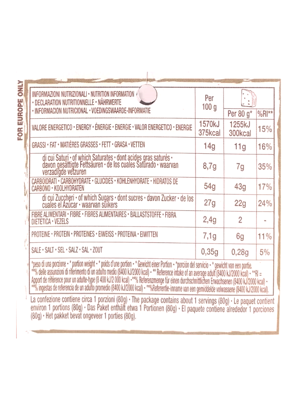 Grassi 14g di cui acidi grassi saturi 8,7g