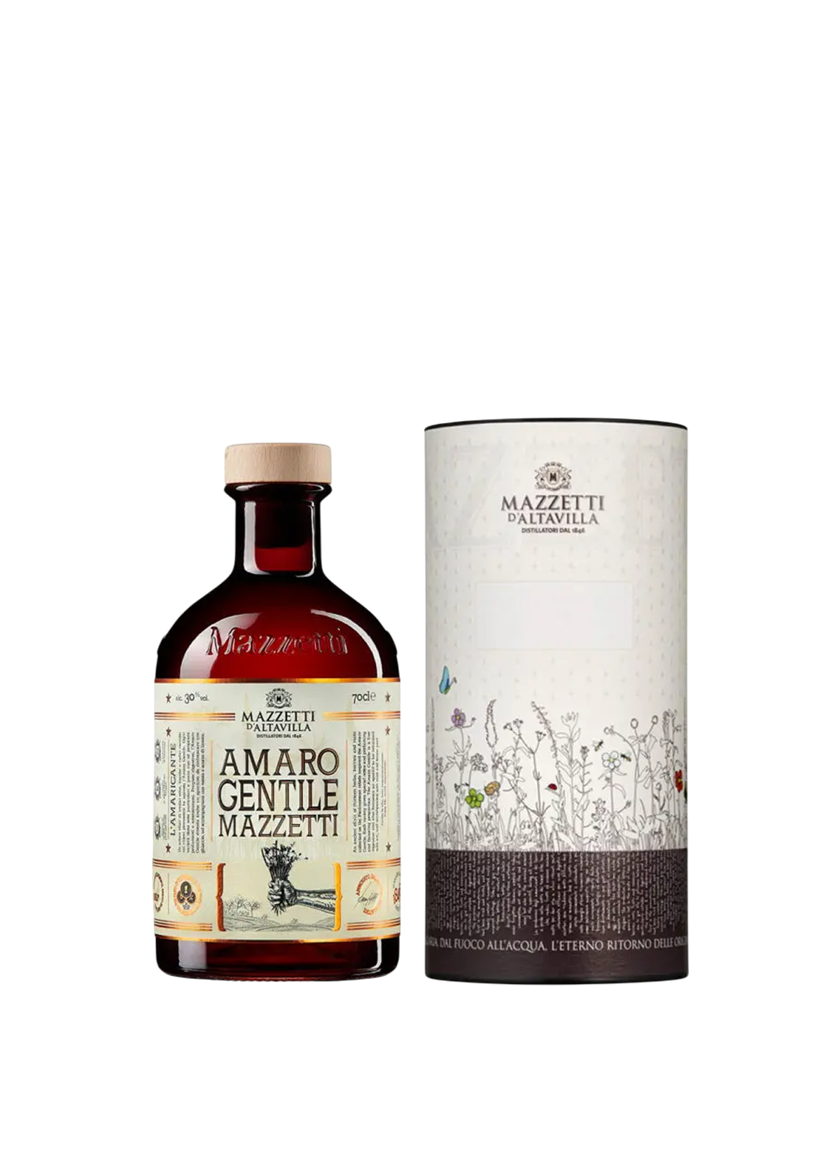 L'Amaro Gentile Mazzetti è un antico elisir di tredici erbe, bacche e radici raccolte sui rilievi piemontesi. Ogni varietà dona note assai particolari al prodotto e porta con sé tradizionali proprietà profumanti, aromatizzanti e digestive.