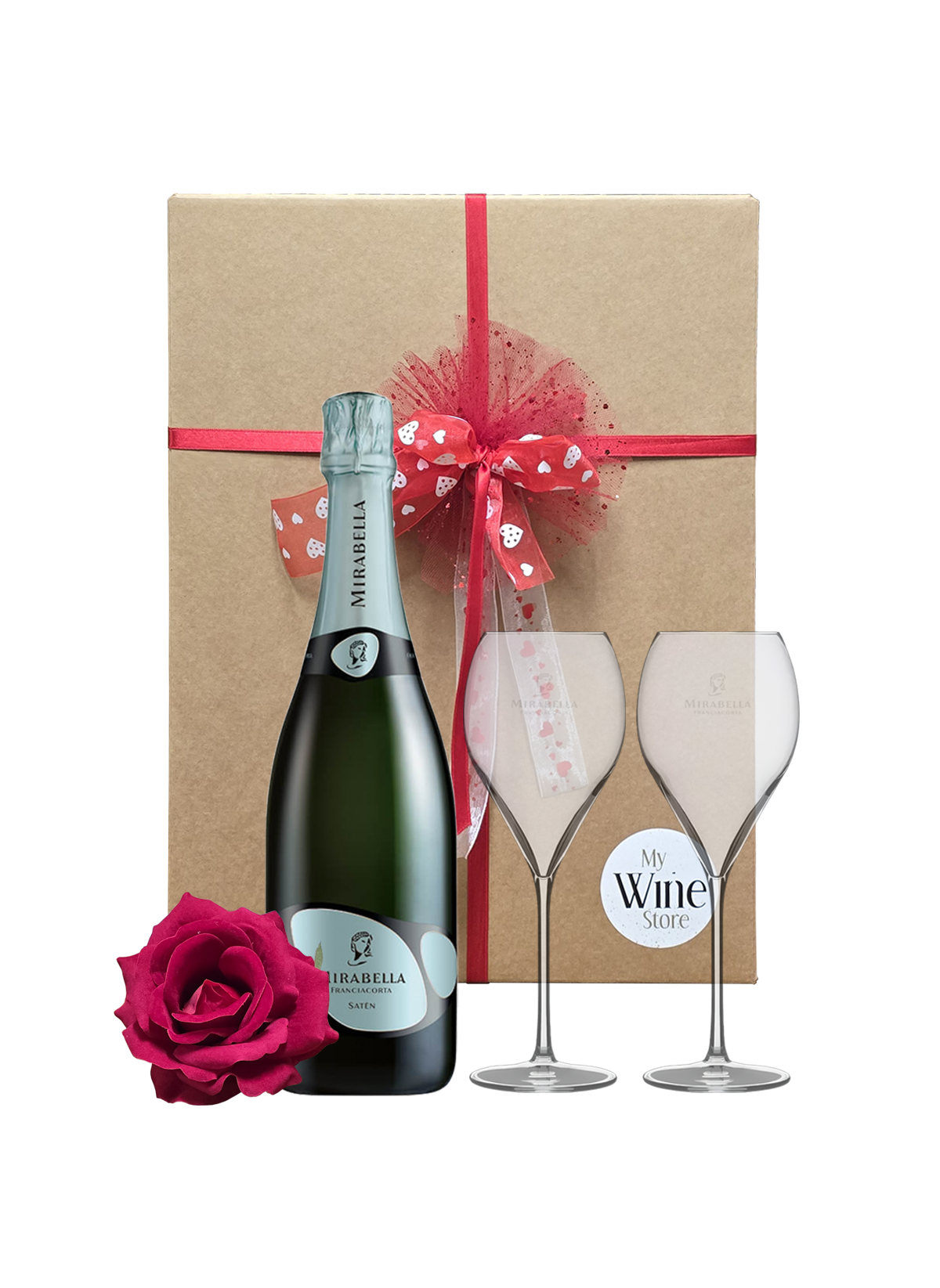 Sorprendi la persona che ami con un regalo unico, da condividere. Una box speciale, contenente il Franciacorta Saten Mirabella e due calici per la degustazione, ricca di accessori e decorazioni a tema per celebrare il vostro amore!