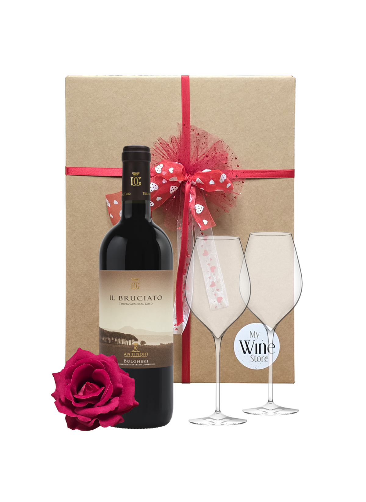 Sorprendi la persona che ami con un regalo unico, da condividere. Una box speciale, contenente il Bruciato Antinori e due calici per la degustazione, ricca di accessori e decorazioni a tema per celebrare il vostro amore!