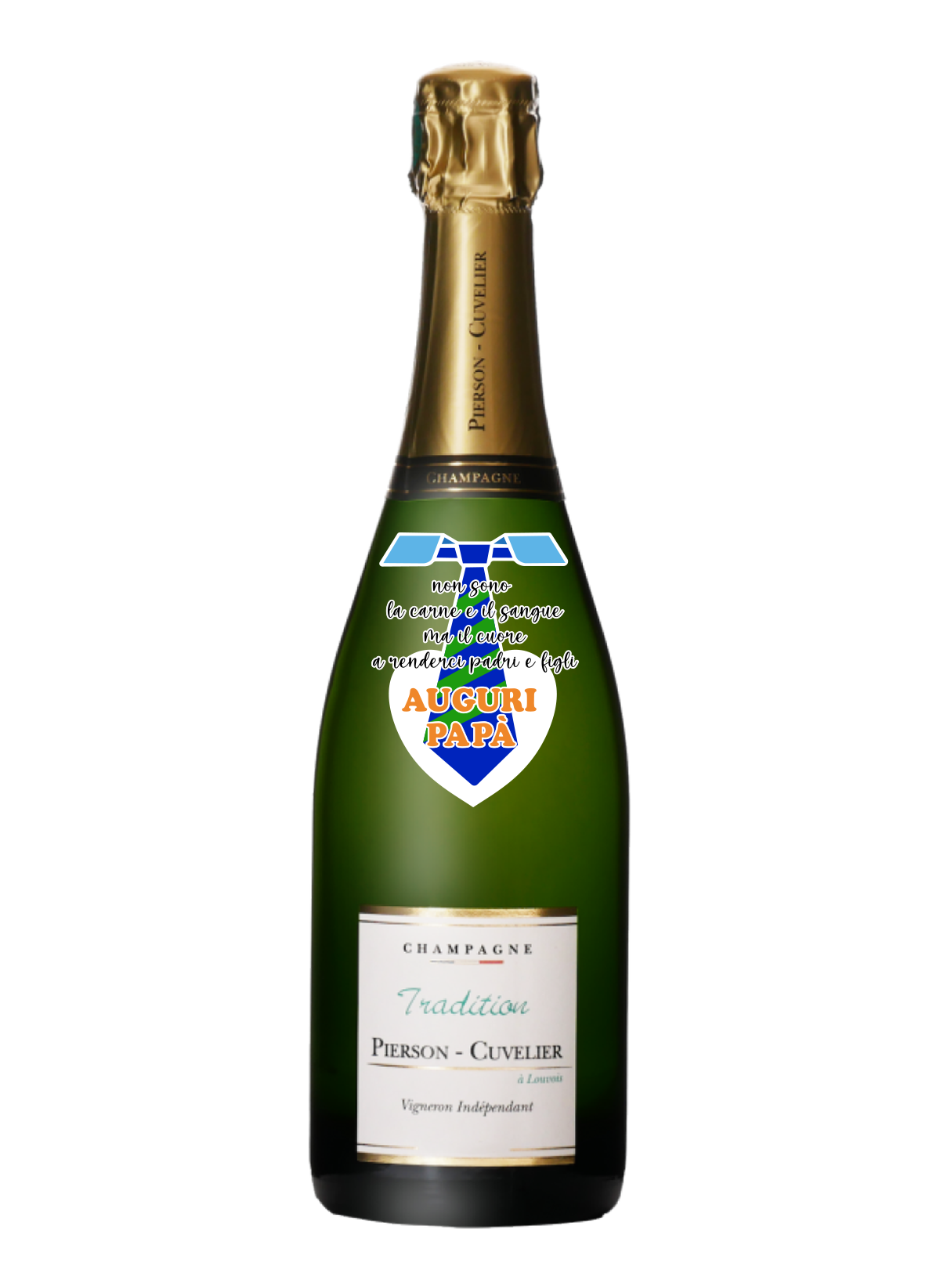 Quella che vedi in foto è un esempio di co e sarà la tua bottiglia personalizzata. P er avere una bottiglia personalizzata devi scegliere un vino, spumante o champagne in catalogo a cui andremo ad applicare questa decorazione, impressa sul vetro.