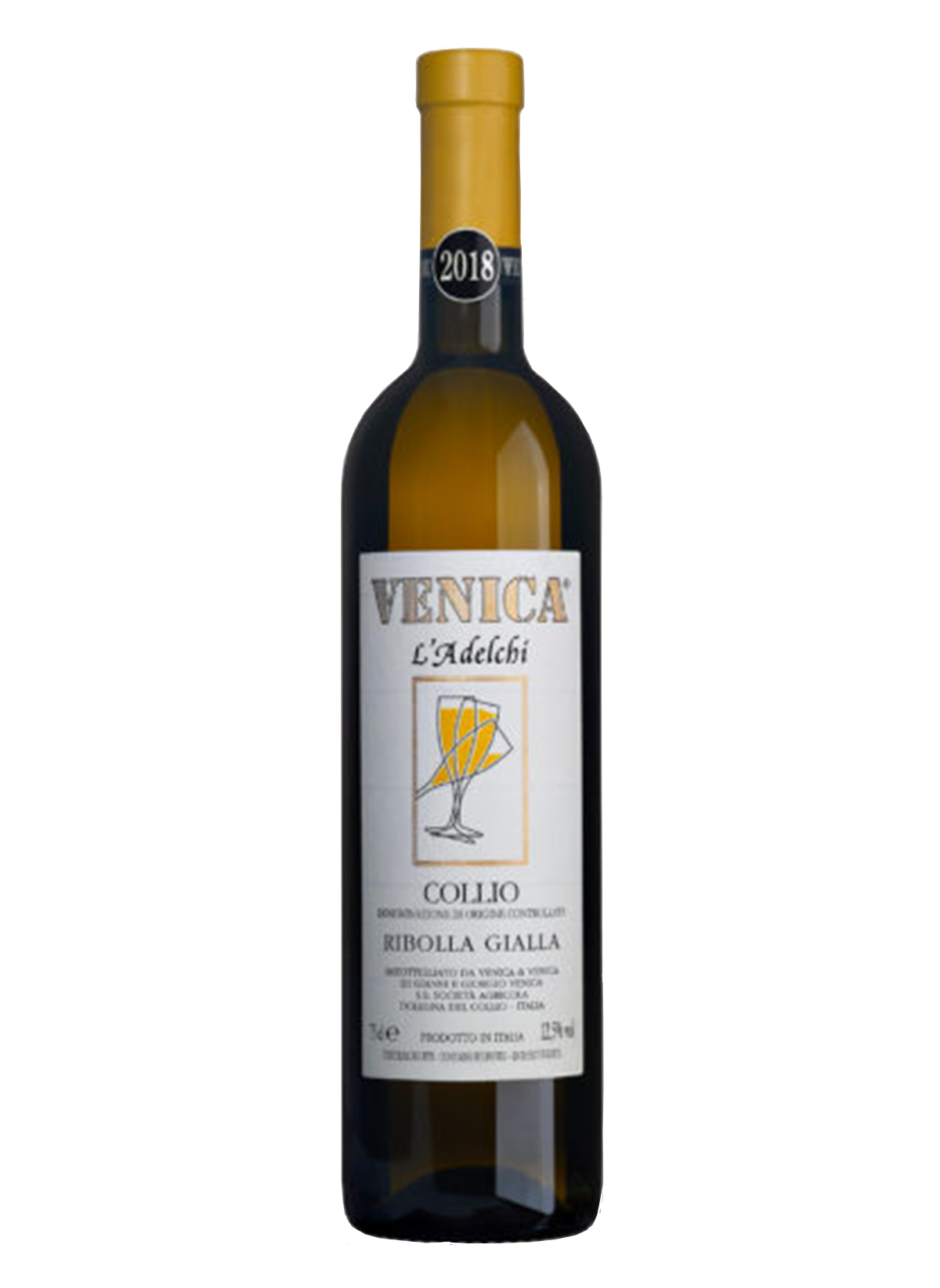 L'Adelchi il Ribolla Gialla DOC Collio di Venica & Venica, testimonia la filosofia dell'azienda e la cura per il processo di vinificazione. Le uve vengono raccolte e poi macerate per 14 ore circa ad una temperatura di 10°/12° C. Il 60% del mosto fermenta e affina sui lieviti per 5 mesi in grandi botti di leegno (20/27 HL) il resto in contenitori di acciaio. Il vino viene poi assemblato ed imbogliato in corrispondenza delle lune piene tra fine marzo e maggio. Ha bouquet piacevole e suadente. Ricorda il bosco, l'acacia, il castagno, il rovere.